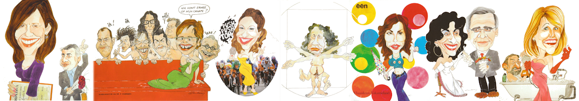 De humoristische cartoons van bekende Vlamingen, politici en andere kopstukken zijn te bezichtigen in de chalet van de Kamer van Retorika,