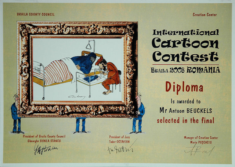 2008 Roemenië Finalist cartoonwedstrijd in Roemenië (Sanonul international de caricaturà – Braila – Romania) ( Bekijk diploma )